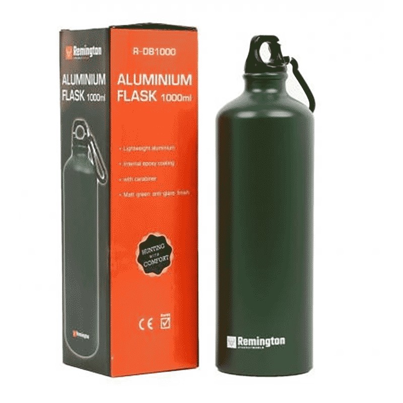 Deze Remington-drinkfles van 1000 ml is perfect voor jacht, vissen, wandelen en buitenactiviteiten. Licht, duurzaam en gemakkelijk te onderhouden dankzij de vervaardiging in aluminium, is hij ontworpen om slijtage te weerstaan en veel gebruiksgemak te bieden tijdens uw avonturen.