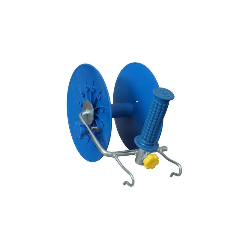 Kenmerken : • Haspel voor perceelafbakening die 600 m standaarddraad kan bevatten. • Stalen vergrendelingshaak en zeer robuuste gegalvaniseerde beugel ! • Bevestiging op paal tot Ø 18 mm of op perimeterdraad. • Verwisselbare spoel