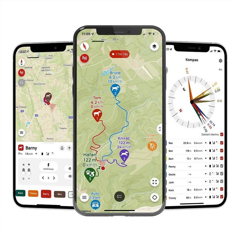 • Volgen tot 13 honden, eigenaren of waypoints