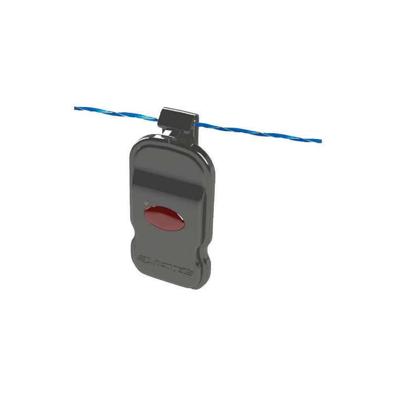 Het knippert wanneer de spanning van de installatie te laag is. Een groene LED bevestigt de goede werking (knippert elke 30 s). 2 waarschuwingsniveaus : BAS (rundvee / paarden / etc…) of HAUT (schapen / wilde zwijnen / etc…). Werkt op batterijen (CR2032 meegeleverd).