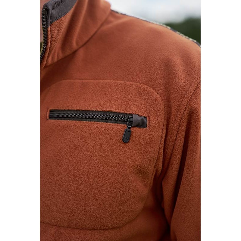 Omkeerbare technische fleecejas voorzien van een GORE WINDSTOPPER-membraan, winddicht en ademend, twee zakken voor portofoon, een zak op de mouw, zijzakken en koord onderaan. De fleecejas is uitgevoerd in een combinatie van groen en oranje, voor een betere zichtbaarheid indien nodig.