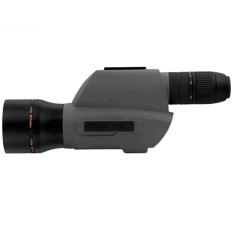 De spotter heeft een groot oculair, wat oogvermoeidheid vermindert, terwijl een overgedimensioneerd oculair zorgt voor comfortabel zicht gedurende de hele dag. Nieuw in het ZeroTech-assortiment: Magpul MLOK-compatibele rail bevestigingspunten op 3, 9 en 12 uur. Deze punten stellen u in staat uw eigen accessoires toe te voegen, zoals een Kestrel-anemometer, een afstandsmeter of een red dot, voor snelle doelacquisitie. De Trace Advanced Spotter kan op een statief worden gemonteerd via ARCA-, Picatinny- of traditionele QD-platen voor statiefkoppen.