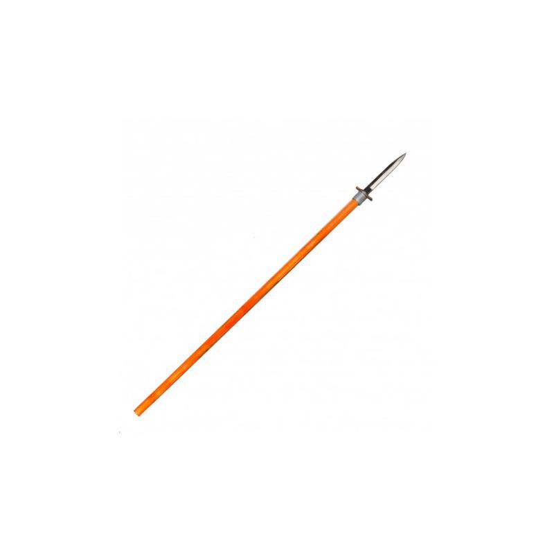 Drijfjachtspies gemaakt in Frankrijk, samengesteld uit een dolk met leren schede en een schacht van 120 cm. Dubbele vergrendeling van de dolk op het handvat.