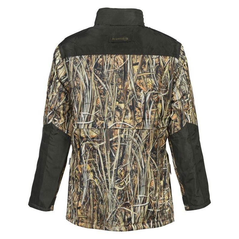 Eigenschappen: • 100% polyester met gelamineerd P.U. waterdichte en ademende membraan, voering en watten 100% polyester. • Antislipbanden op de schouders, comfortplooien op de schouders, 1 borstzak met waterdichte ritssluiting, 2 handwarmerzakken, 2 grote onderzakken met 2 rijen geïntegreerde patroonhouders (kogels en lood), plus kleppen voor het open houden, 3 binnenzakken waaronder een armbandzak, wildzak met waterdichte en afneembare voering aan 3 kanten, sleutelhaak, geïntegreerde capuchon in de kraag, verstelbare winddichte manchetten met klittenband.
