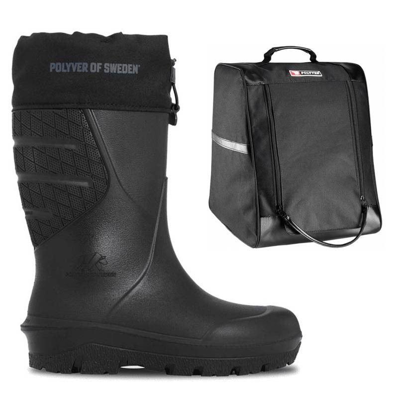 De bodem is versterkt, waardoor meer stabiliteit bij het neerzetten wordt geboden en de tas en laarzen worden beschermd tegen voortijdige slijtage door wrijving op ruwe oppervlakken. De doordachte afmetingen (40 x 30 x 35 cm) zijn perfect afgestemd op de verschillende laarzenmaten van het POLYVER-assortiment, waardoor een ideale pasvorm ontstaat zonder onnodig volume.