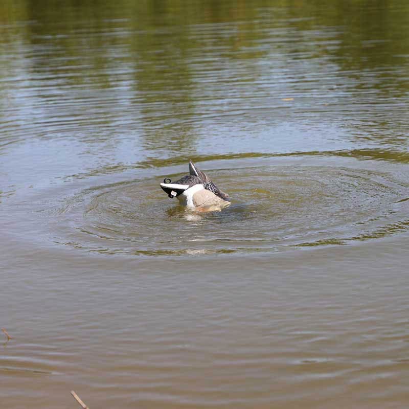 - Onvoorspelbare actie : Een ingebouwde timer varieert de inschakeltijd van de motor van fracties van een seconde tot meerdere seconden, waardoor een erratisch patroon ontstaat dat perfect een levende, foeragerende eend simuleert.