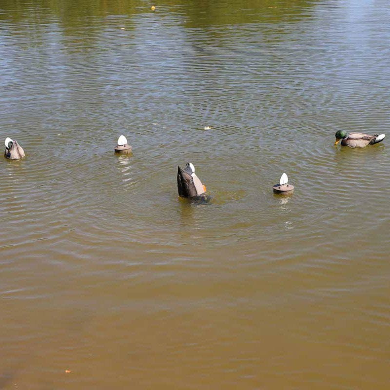 Advies van onze experts : Om de efficiëntie van de Mallard Machine te optimaliseren, plaats deze in het midden of aan de voorkant van uw uitrusting. De waterverstoring die hij genereert moet zichtbaar zijn voor vogels in vlucht, omdat dit een krachtig signaal is dat het gebied veilig is en rijk aan voedsel. Gebruik hem als aanvulling op eenden met draaiende vleugels voor een compleet visueel en geluidseffect.