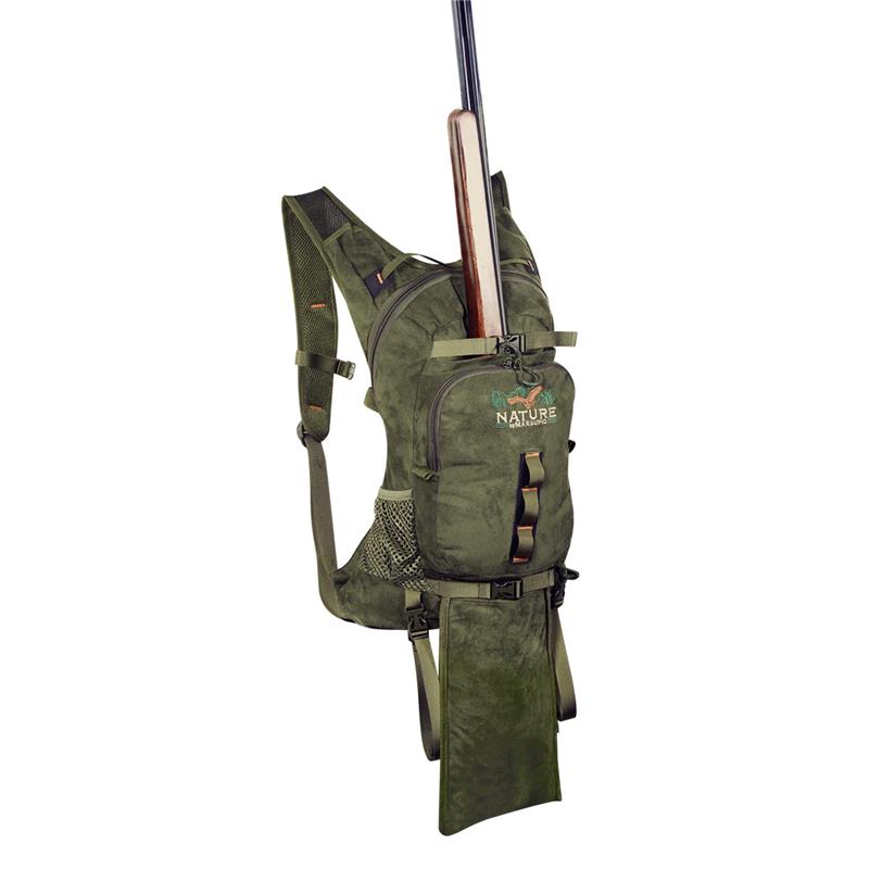 Kleine veelzijdige en functionele rugzak, hij is voorzien van een ovaal rugsysteem , verstelbare schouderbanden, een borstriem met noodfluitje en een heupband. De voorkant is uitgerust met een opvouwbare wapenhouder met verstelriemen, ideaal voor lange reizen en om uw wapen comfortabel en veilig te vervoeren. Bovendien verandert de tas, door de onderste zak te sluiten, in een opbergvak voor uw spullen. De voorzak heeft praktische gaasvakken en functionele bevestigingspunten aan de buitenzijde. Twee riemen aan de onderkant maken het mogelijk materiaal te vervoeren en er zijn zijvakken van gaas. Compatibel met een hydratatiesysteem.