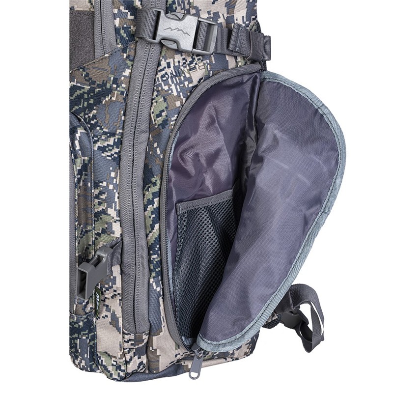 Deze rugzak is uitgerust met meerdere hoofdcompartimenten, allemaal afgesloten met ritsen, waardoor u uw uitrusting gemakkelijk kunt organiseren en snel toegang tot uw spullen hebt wanneer u ze nodig heeft. Bovendien is hij voorzien van bevestigingsriemen om extra voorwerpen aan de buitenkant van de rugzak vast te zetten.