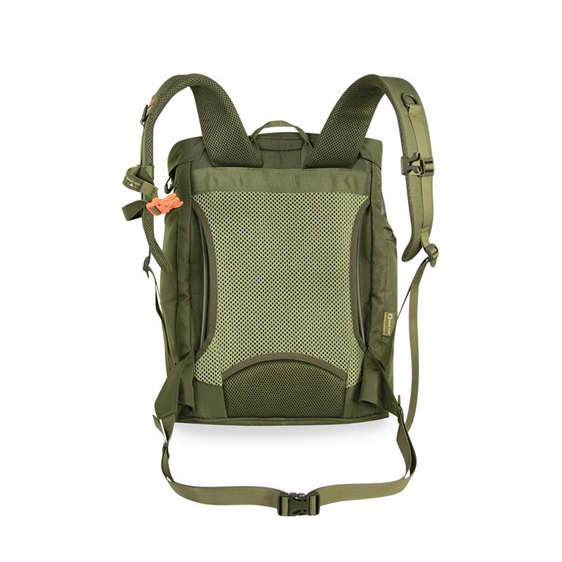 Nieuwe technische rugzak voor het plukken van paddenstoelen, van Mar-tex Ripstop-stof. Conform de Italiaanse wetgeving dankzij zijn mesh-bodem, heeft hij twee extra mesh-secties aan de voorkant en aan de zijkant. Het interieur is voorzien van een uitneembare stijve structuur die de stabiliteit van de rugzak garandeert en de integriteit van de paddenstoelen bewaart. De schouderbanden zijn gewatteerd en verstelbaar, met een verstelbare borstriem met gesp met fluit. Hij is uitgerust met een U-vormig ademend rugpaneel en een verstelbare heupband. Hij beschikt over zijlussen voor stokken en twee zijzakken, waarvan er één een extra vak voor kaart/vergunning heeft, terwijl de andere gealuminiseerd is. Een extra zak op de kap maakt het mogelijk documenten en persoonlijke spullen te vervoeren, met een SOS-informatiepaneel. Hij is voorzien van een verstelbare draagriem en een draaghandvat.