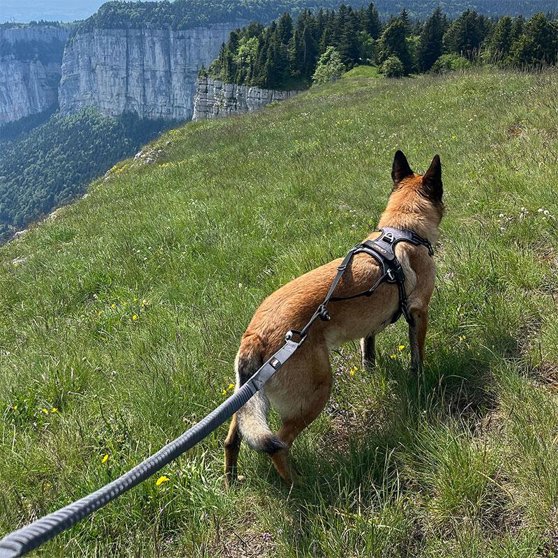 Twee handgrepen : De twee handgrepen van de lijn maken een dubbele toepassing mogelijk terwijl kwaliteit en comfort behouden blijven voor uw dagelijkse wandelingen, en voor uw sportactiviteiten (canicross, canivtt, caniranda...) :