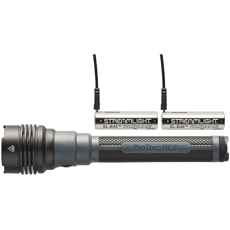 De zaklamp ProTac HL® 6 is een echte verlichtingscentrale met 5 300 lumens in hoge stand. Ze gebruikt twee beschermde, oplaadbare SL-B48® USB-C lithium-ionbatterijen van 5 000 mAh. Ze biedt hoge helderheid en ongeëvenaarde bedrijfstijden.