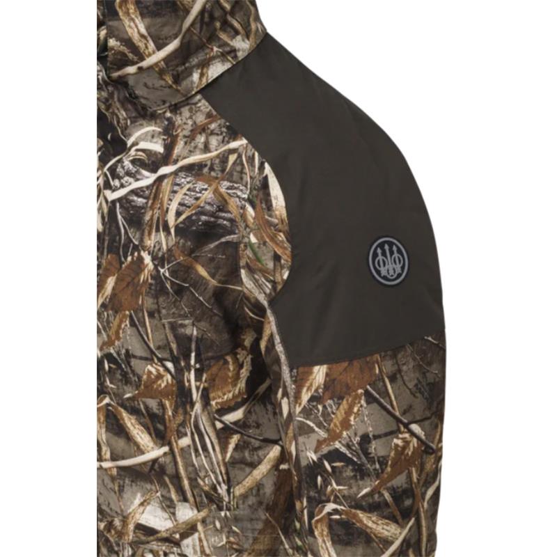 Jachtjas voor heren Tri-Active EVO, ontworpen voor het stalken of jagen vanaf een uitkijkpost in open gebieden waar het essentieel is volledig stil en droog te blijven. Waterdicht en ademend, uitgevoerd met elastische inzetstukken voor maximale bewegingsvrijheid.Waterdicht en ademend dankzij de membraan - Beretta Waterproof Breathable -, met een elastische binnenvoering.Het buitenmateriaal is behandeld met een hydrofobe DWR-behandeling - Durable Water Repellent.
