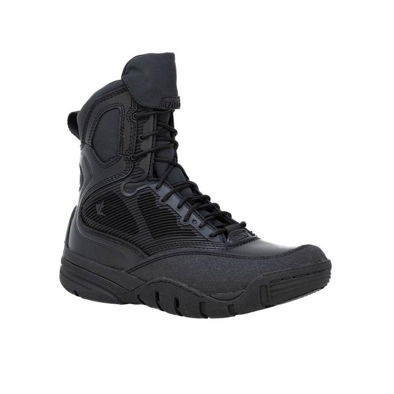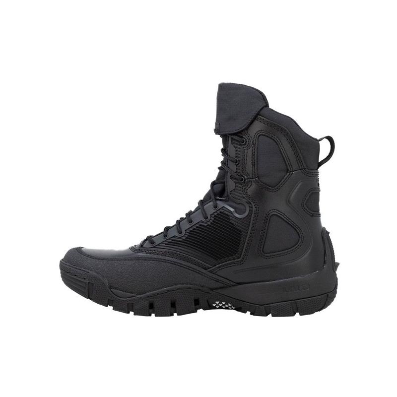 Caractéristiques : • Wysokie, wielofunkcyjne buty interwencyjne • Zalecane do operacji amfibijnych • Dwukierunkowy system odprowadzania wody • Kratka KPU do filtrowania i zapobiegania przedostawaniu się zanieczyszczeń do buta przy jednoczesnym zapewnieniu dobrej oddychalności • Profil przodostopia przystosowany do utrzymania płetwy • Miejsce do zablokowania płetwy lub taśmy IR Glint • Wzmocniony przód buta, aby ograniczyć zużycie płetw • Kolce metalowe (nienmagnetyczne) na wewnętrznej stronie podeszwy do kontroli gładkiej liny • Kieszonka do przechowywania i ukrywania sznurówek • Oddychająca, antybakteryjna i hydrofobowa wyściółka • Antypoślizgowa podeszwa zapewniająca przyczepność, wykonana z gumy formowanej wtryskowo • Artikulowany kształt pięty i podeszwy zewnętrznej dla cichego i dyskretnego toczenia stopy • Kompozytowa płyta odporna na przebicie z możliwością rotacji dla ochrony i ograniczenia zmęczenia • Wielogęstościowa wkładka śródpodeszwy EVA zaprojektowana do amortyzacji uderzenia stopy i nadania impulsu przy wybiciu pięty • Lekka, bezszwowa konstrukcja chroniąca stopę • Elementy wykończeniowe z nylonu rip-stop • Nacięcie ułatwiające zginanie w okolicy ścięgna Achillesa • Cholewka ze skóry pełnoziarnistej i wyściółka TEK-DRY™ • Wysokość 8" • Waga (43/9.5us) : 604 g • Rozmiar US