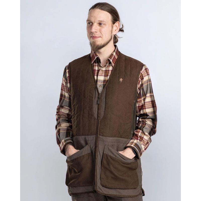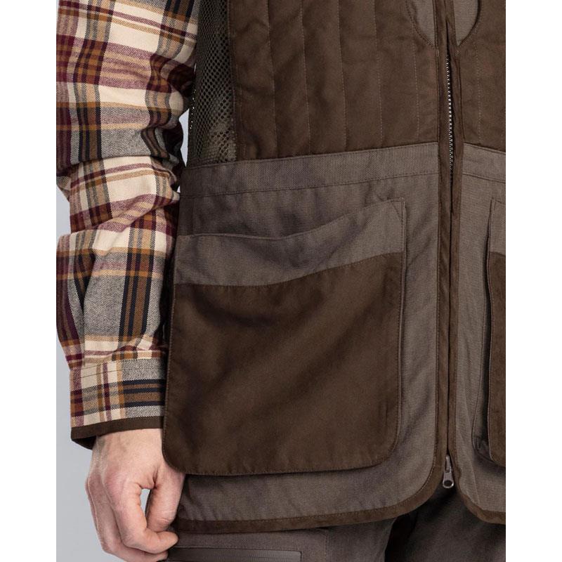 Kamizelka strzelecka Pinewood® dla mężczyzn została zaprojektowana z myślą o optymalnym komforcie i funkcjonalności dzięki swojej przewiewnej siateczkowej podszewce High-Ventilation™. Posiada obfite przednie i tylne kieszenie, zapewniające łatwe przechowywanie i dostęp do amunicji. Na chłodniejsze dni dostępne są kieszenie ogrzewające dłonie. Dla większego komfortu podczas strzelania kamizelka jest wyposażona w regulowaną wkładkę absorbującą odrzut (wkładka w zestawie). Praktyczna wewnętrzna kieszeń na zamek pozwala bezpiecznie przechować wartościowe przedmioty, takie jak klucze czy telefon komórkowy. Ramiona są lekko wyściełane, kamizelka posiada dwukierunkowy zamek błyskawiczny, eleganckie detale z syntetycznego zamszu oraz funkcjonalne kółko typu D na plecach.