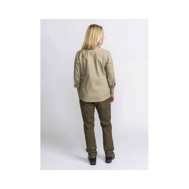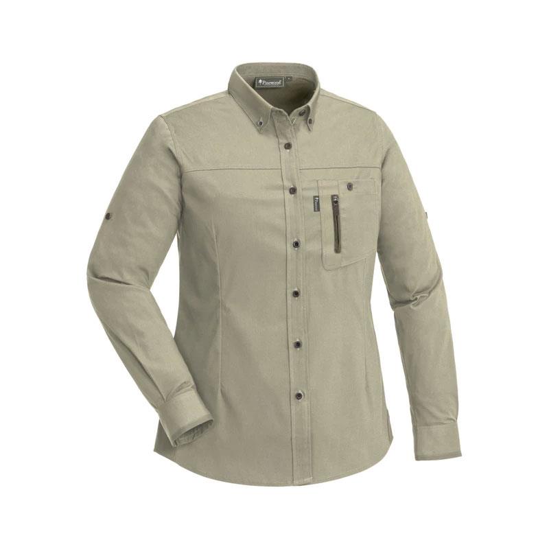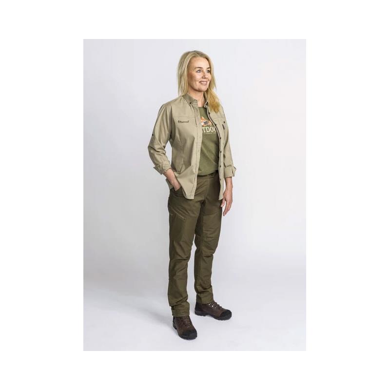 Koszula z długim rękawem z materiału TC-stretch. Damski krój. Nowoczesny krój. Wykonana z materiału łatwego w pielęgnacji. Obróbiona środkiem Pinewood InsectSafe, długotrwała ochrona przed komarami i kleszczami.