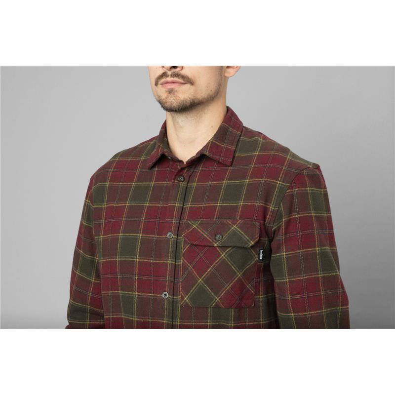 Koszula flanelowa Glen: natychmiastowy komfort spotyka klasyczny styl. Trwała szczotkowana bawełna, idealna na teren lub do codziennego użytku. Posiada zakładki z tyłu, guziki z logo Seeland oraz kieszeń na piersi.