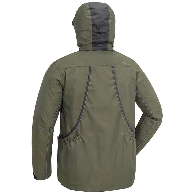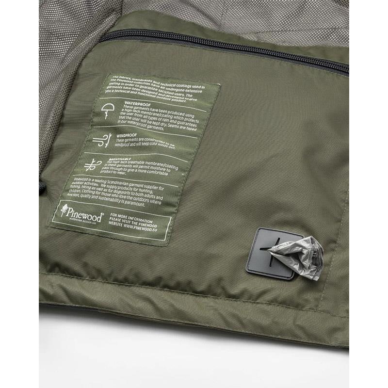 Przestronne kieszenie przednie po obu stronach - z magnetycznymi zatrzaskami i elastycznym kółkiem typu D, do którego klapki można przymocować za pomocą zapięcia na rzep wewnątrz kieszeni. Kieszenie na dłonie (ocieplane) oraz podwójne kieszenie na piersi, a także trzy kieszenie wewnętrzne – łatwo dostępne, w tym jedna na worki na odchody psów.