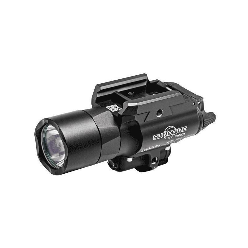 Surefire X400® łączy w jednym systemie oświetlenia do broni latarkę LED i zielony laser. Latarka LED 1000 lumens jest teoretycznie niezniszczalna, ponieważ nie ma żarnika (brak ryzyka, że się złamie lub spali). Jej reflektor TIR (Total Internal reflection) to innowacja Surefire: odlew zbiera całe światło z reflektora, aby skoncentrować je w silnym, skupionym strumieniu na środku, co pozwala wyraźnie zidentyfikować każde zagrożenie. Mechanizm regulacji lasera wykorzystuje śruby Nylok ®, które nie są podatne na efekty odrzutu, co oznacza, że ponowne nastawianie jest rzadko konieczne. SF-X400® jest dostarczana z dwoma podkładkami-adapterami umożliwiającymi szybkie mocowanie na uniwersalnym uchwycie lub na szynach Picatinny. Ambidextralny przełącznik dźwigniowy pozwala na obsługę jednym palcem dla chwilowego lub stałego włączenia, a selektor trybu umożliwia wybór samego światła białego,światła białego + lasera, samego lasera lub wyłączenie systemu.