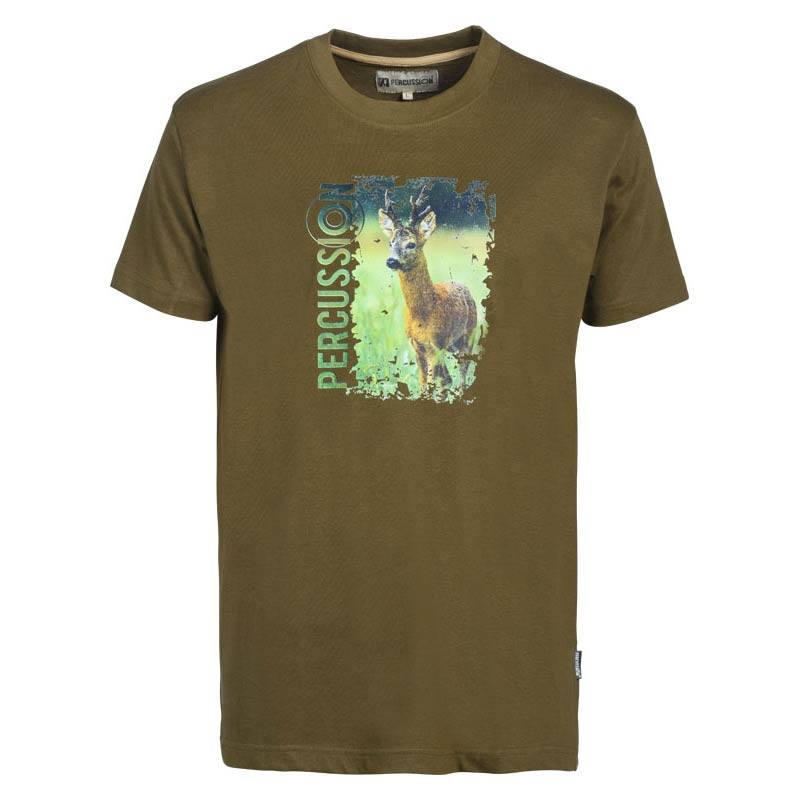 Męski T-Shirt Z Krótkim Rękawem Percussion Serigraphie - Kozioł - Khaki