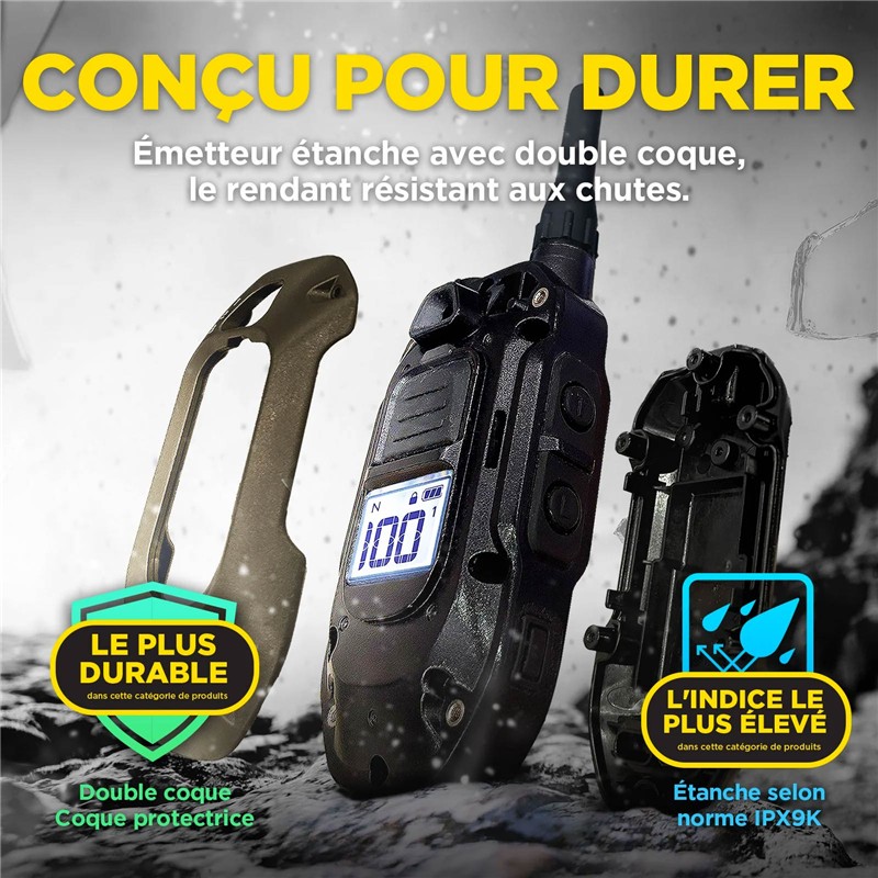 Nadajnik 1200X jest narzędziem precyzyjnym, które wymaga rygorystycznego parowania z Twoimi odbiorczymi obrożami, aby zapewnić idealną synchronizację. Zalecamy zawsze korzystać z blokady bezpieczeństwa poziomu stymulacji (Lock) po określeniu progu pracy dla Twojego psa, aby zapobiec nieodpowiedniej korekcie spowodowanej przypadkowym ocieraniem się potencjometru o ubranie lub sprzęt łowiecki.