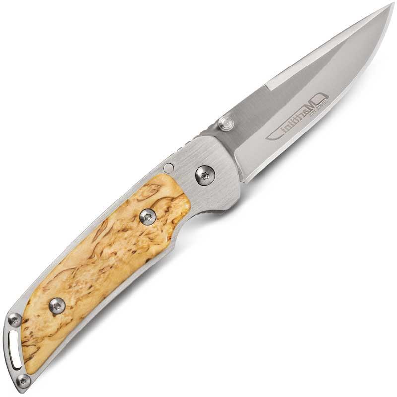 • Rękojeść : brzoza maserowana “liner lock” (system blokujący ostrze), klips do paska