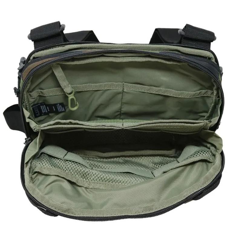 Bądź gotowy na wszystko dzięki Skyweight Utility Chest Pack w kamuflażu Woodland. Ważąca mniej niż kilogram, ta saszetka o pojemności 2 litrów pozwala mieć podstawowy sprzęt pod ręką. Główna komora jest łatwo dostępna dzięki rozkładanemu otwarciu. Przednia kieszeń zapinana na zamek oraz rozciągliwe kieszenie materiałowe umożliwiają przechowywanie najważniejszych przedmiotów. System uprzęży z szybkim zapięciem jest regulowany i wszechstronny. Po odpięciu można używać jej samodzielnie lub jako saszetki na pas. Suwaki umożliwiają szybki dostęp do dwustronnej komory CCW, przeznaczonej dla pistoletów kompaktowych. Wewnętrzny panel z rzepem zapewnia platformę montażową, natomiast dostępne są elastyczne paski do zabezpieczania przedmiotów. Oddychający panel tylny zapewnia komfort, a wyściełane przejście jest kompatybilne ze standardowymi pasami, pasami biodrowymi plecaków RUSH® 100 lub pasem biodrowym Skyweight (sprzedawany osobno). Mocowania na sprzęt, boczne klamry 1x1 i dolne pętle pasków maksymalizują możliwości przenoszenia. Cokolwiek musisz zrobić, możesz polegać na Skyweight Utility Chest Pack.