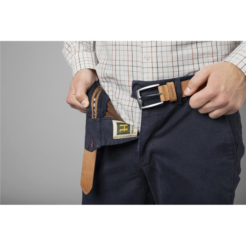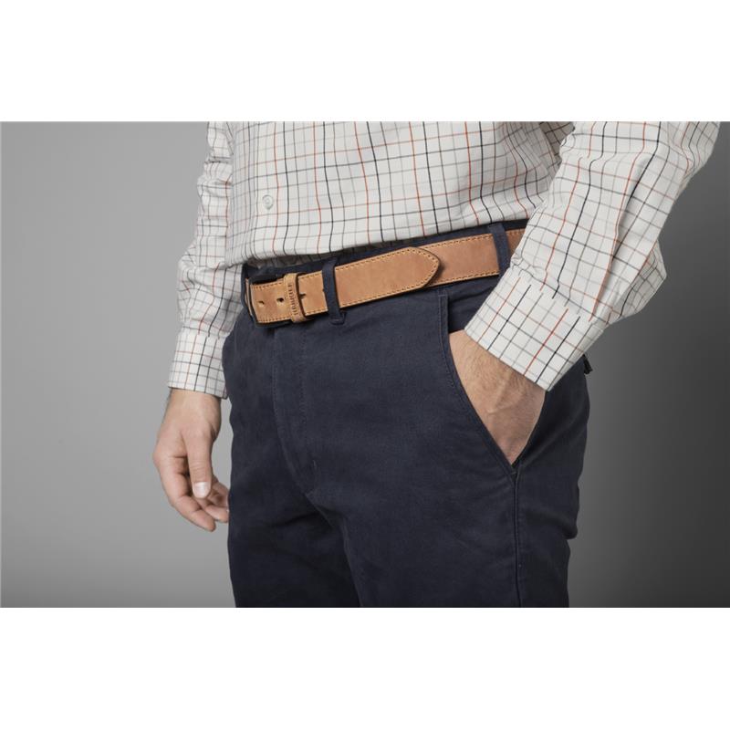 Chino Norberg jest uszyty z tkaniny 97 % bawełny i 3 % elastanu, co sprawia, że jest niezwykle przyjemny w noszeniu, ponieważ podąża i dopasowuje się do twoich ruchów. Zapinany na guziki z rogu, posiada dwie skośne kieszenie przednie, mniejszą kieszeń po prawej stronie, oraz dwie kieszenie tylne zapinane na guzik.
