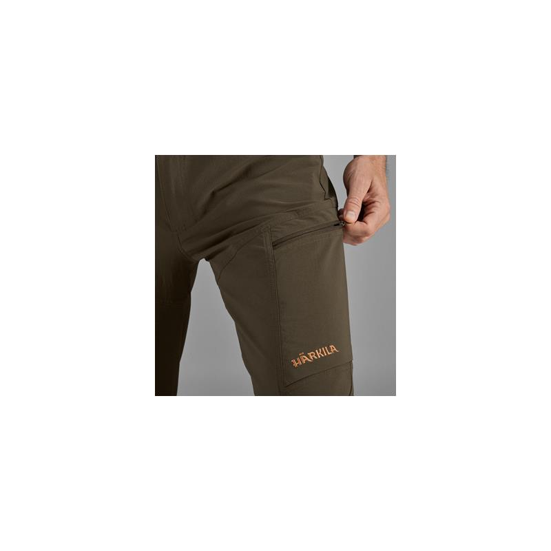 Spodnie Trail uszyte są z tkaniny 87 % poliesteru i 13 % elastanu, która jest wytrzymała i odporna na rozdarcia, a jednocześnie elastyczna i schnie szybciej niż większość innych materiałów. Zintegrowana ochrona przed owadami Tanatex® odstrasza muchy, komary i kleszcze, które pojawiają się masowo, gdy jest gorąco. Oprócz dwóch ukośnych przednich kieszeni te spodnie mają dwie szerokie kieszenie cargo zapinane na zamek.