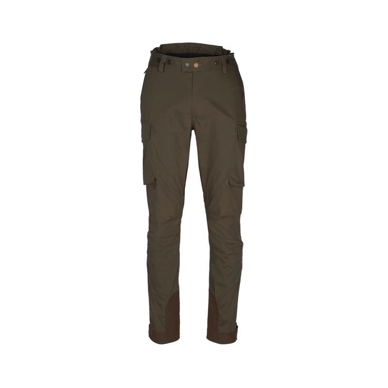 Spodnie myśliwskie, wiatroszczelne i wodoodporne, z wieloma inteligentnymi funkcjami dla myśliwego. Są miękkie i wygodne dzięki rozciągliwości w obu kierunkach i elastycznej podszewce, a wyprofilowane kolana zapewniają dodatkową elastyczność. Są wysoce oddychające, a szczelne szwy zapobiegają przedostawaniu się wody. Istnieje wiele funkcji myśliwskich, takich jak kieszeń na nóż i kieszeń z uchwytem na nabój. Nogawki można regulować, aby uzyskać idealne dopasowanie, dzięki rzepom na łydkach oraz zamkom błyskawicznym i rzepom u dołu. Podszewka ma napy, do których można przypiąć szelki, na przykład artykuł 1116, dla lepszego dopasowania. Te spodnie można nosić w każdych warunkach pogodowych, ale są szczególnie przydatne podczas zimnych i wilgotnych dni.