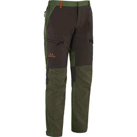 Wytrzymałe i lekkie spodnie zewnętrzne z tkaniny poliestrowo-bawełnianej. Przód nogawek i siedzisko są wzmocnione tkaniną odporną na ścieranie. Duże rozciągliwe panele z przodu i z tyłu zapewniają idealne dopasowanie. Przestronne przednie kieszenie. Dwie kieszenie na nogawkach odpowiednie na telefon komórkowy lub portfel. Dół nogawki można regulować pod względem szerokości za pomocą nap. Nietoksyczne i przyjazne dla środowiska zabezpieczenie przeciw komarom i kleszczom.