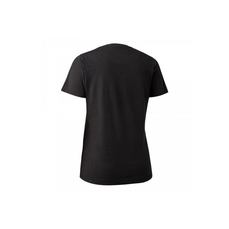 Niezbędny t-shirt Lady Logo z okrągłym dekoltem Deerhunter łączy minimalistyczny design z miękkim i wygodnym materiałem dzięki mieszance bawełny i poliestru. Dostępny w gamie neutralnych kolorów i w damskim kroju, łatwo go nosić z innymi ubraniami outdoorowymi i myśliwskimi.