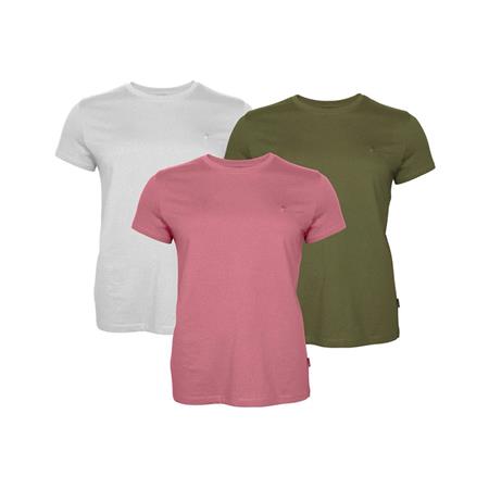 Te miękkie i wygodne damskie t-shirty są dostępne w ładnych, naturalnych kolorach i sprzedawane w praktycznym opakowaniu po 3. 100 % bawełny (jakość bawełny 160 g) i mają klasyczny krój z okrągłym dekoltem. Te t-shirty to doskonałe podstawowe elementy garderoby, idealne do noszenia warstwowo pod sweter, polar lub kurtkę dla niezrównanego komfortu i elegancji.