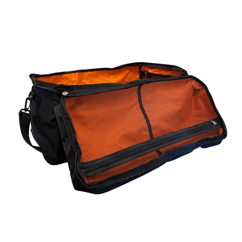 • Kieszenie z siatki wewnątrz torby, na górze i na obu końcach