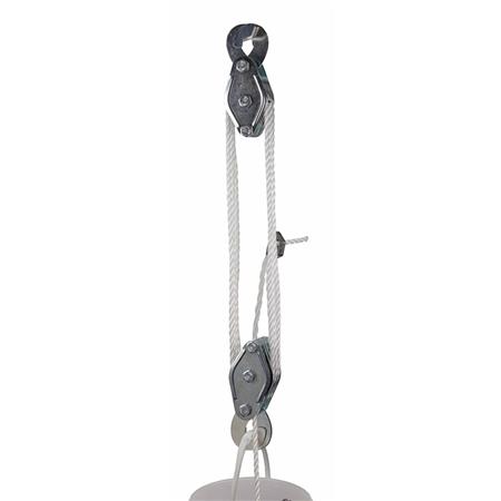 Wciągarka z 8 rolkami prowadzącymi, do obciążeń do 300 kg, 20 m liny z polipropylenu w zestawie, doskonała pomoc przy patroszeniu, łatwa do złożenia i przenoszenia.