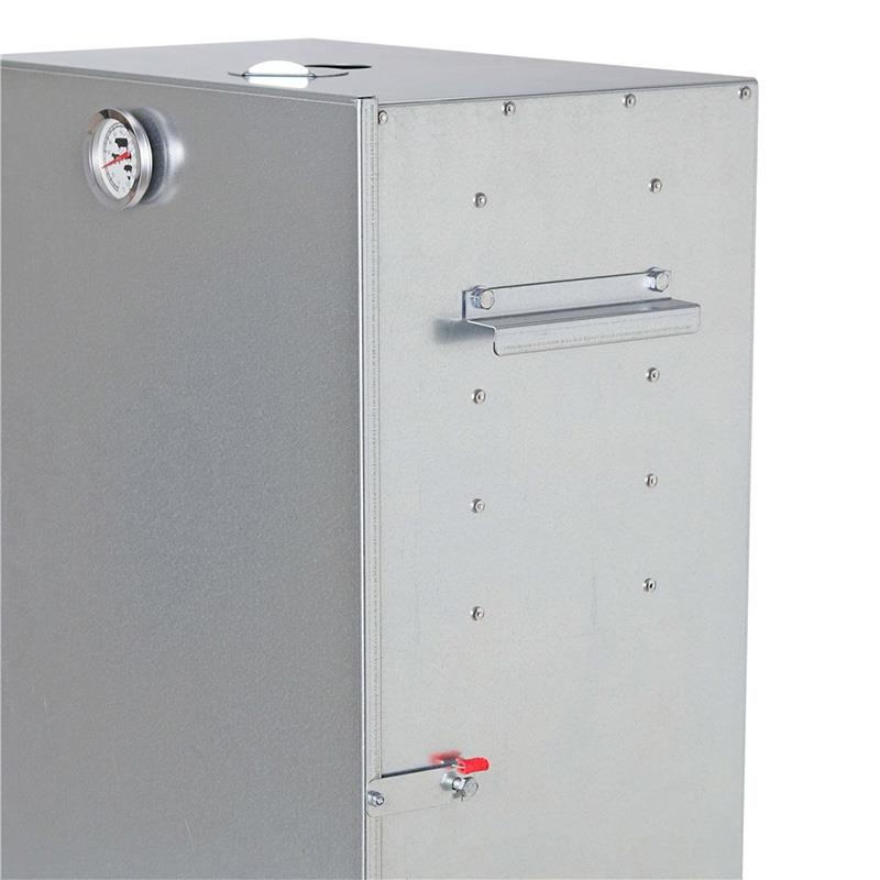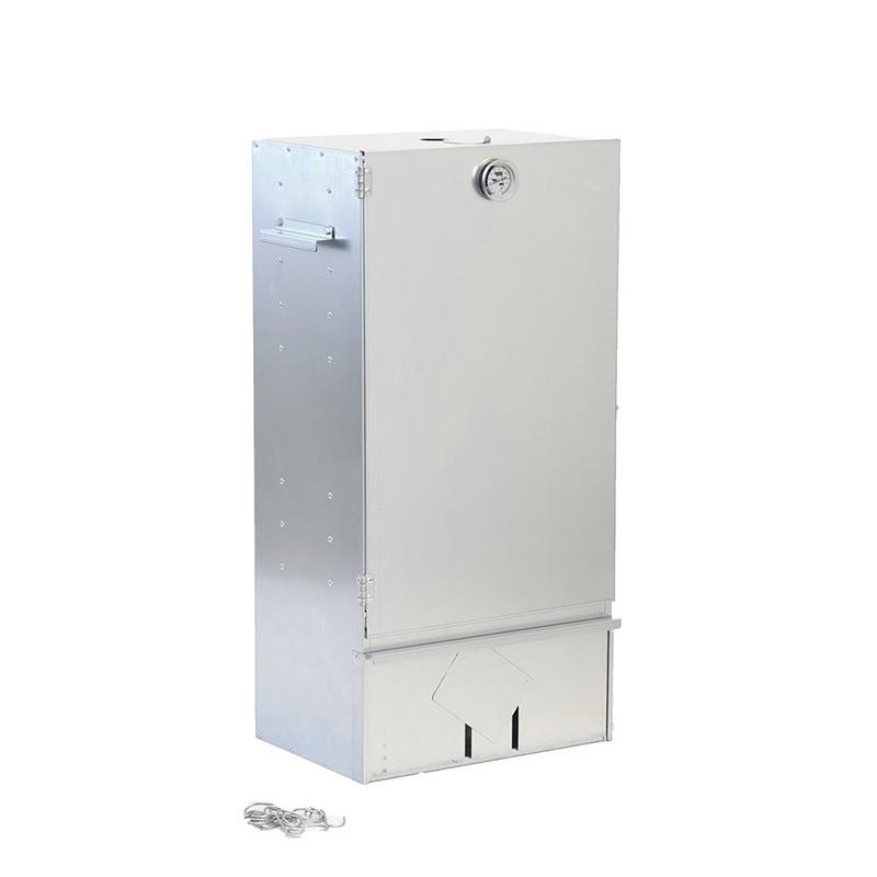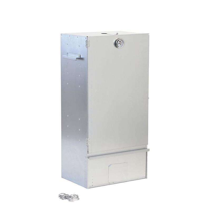 • Prostokątna wędzarnia o wymiarach 39x27 cm i wysokości 80 cm, wykonana z blachy ze stali ocynkowanej.
