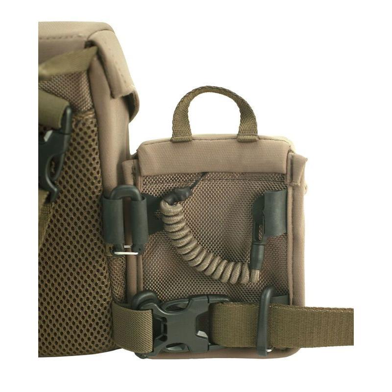 La poche se connecte facilement au harnais magnétique pour jumelles avec l'aide de clipsbale.