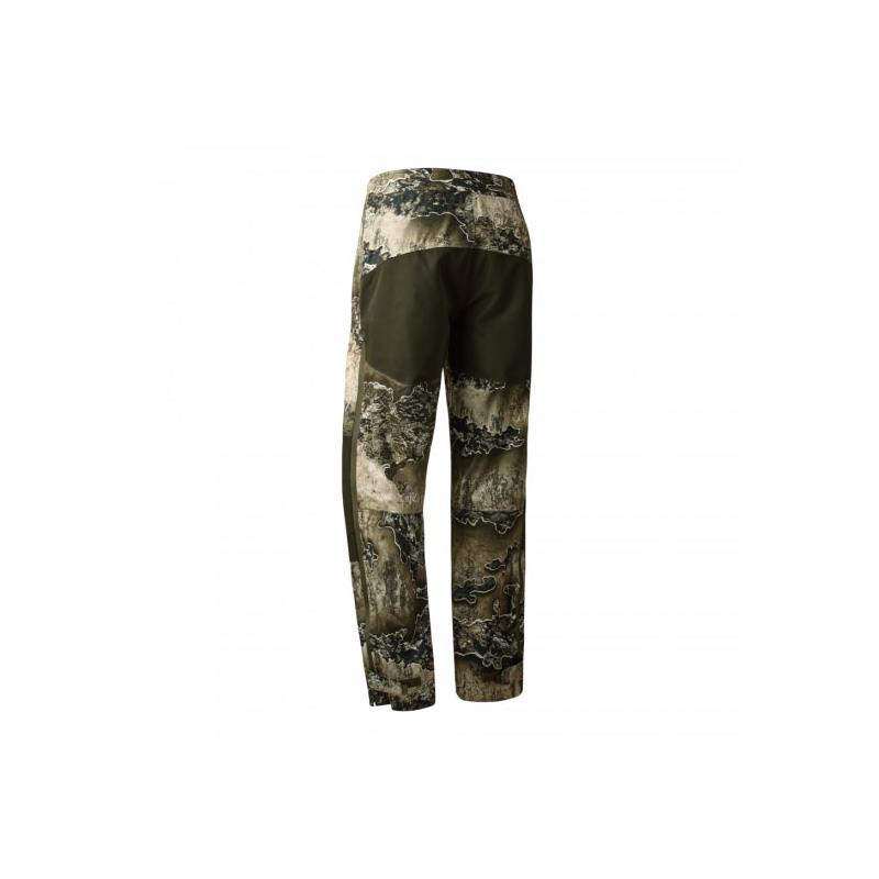 As calças de chuva Deerhunter Excape foram concebidas para o utilizador que procura umas calças de chuva respiráveis, à prova de vento e impermeáveis. Não comprometem as características técnicas, beneficiando de um cós ajustável com faixa e fivela e reforços ao nível da cintura e dos joelhos. As calças de chuva Excape têm dois grandes bolsos frontais com fechos impermeáveis que garantem que o seu conteúdo se mantêm seco e seguro. As calças têm joelhos pré-moldados, e são ajustáveis ao nível dos tornozelos por meio de uma faixa com velcro. O fecho de correr extra longo na costura lateral facilita o vestir das calças sobre roupas e botas, permitindo pô-las e retirá-las rapidamente. As calças de chuva Excape são ideais como calças de protecção para tempo húmido e para os dias de actividades ao ar livre chuvosos.