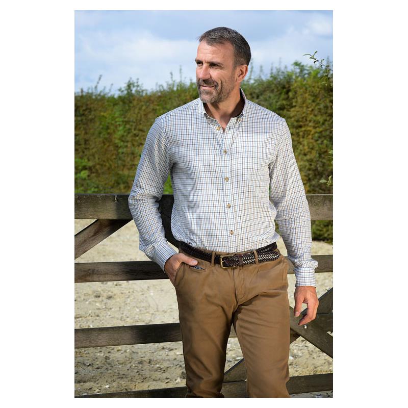 Camisa de xadrez de manga comprida em 100% algodão escovado, com bolso no peito e gola abotoada; mantém-se bem colocada graças ao seu comprimento extra.