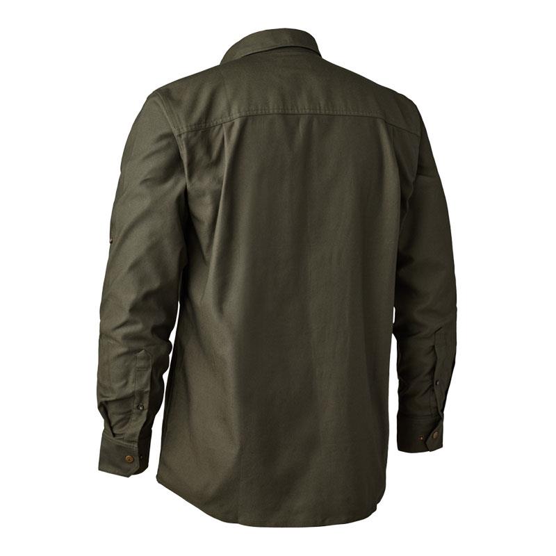 Esta camisa clássica é feita de um tecido misto de algodão e poliéster regenerado, com propriedades extensíveis bidirecionais características das roupas Deerhunter. Está equipada com pregas nas costas para mais conforto e liberdade de movimento. Com dois tipos diferentes de bolsos no peito seguros, uma gola com botões escondidos e tiras para prender as mangas enroladas, a camisa Matobo Deerhunter é tão prática quanto elegante.