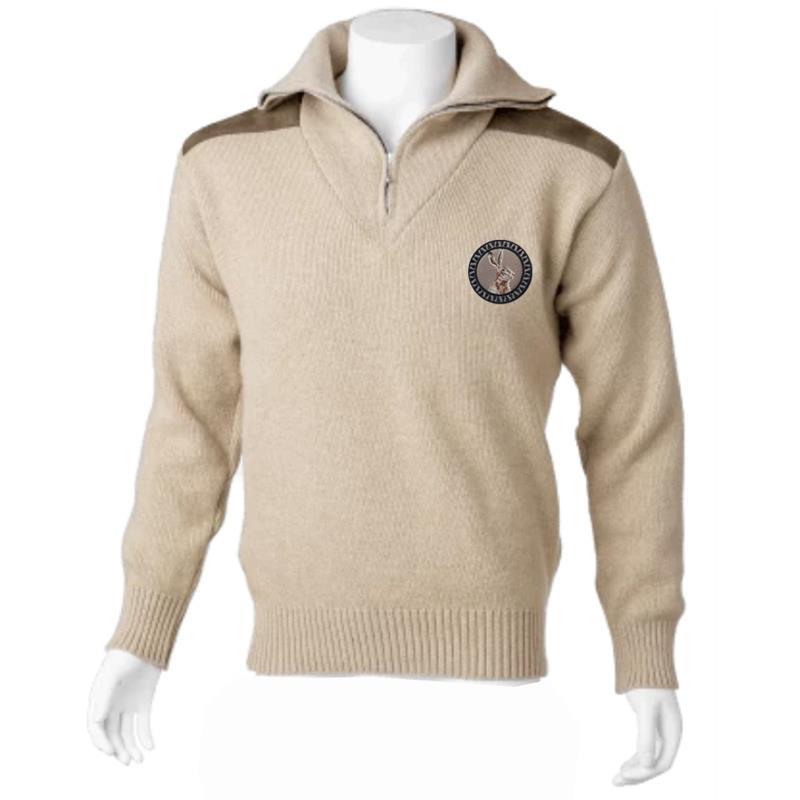 Características: • Camisola de malha jersey. • 30% lã, • bitola 7, bitola interna e externa. • Colarinho e ribana nas mangas e na cintura contrastantes, • reforços em camurça nos ombros. • Produto lavado e amaciado para um toque suave. • Camisola de caça.