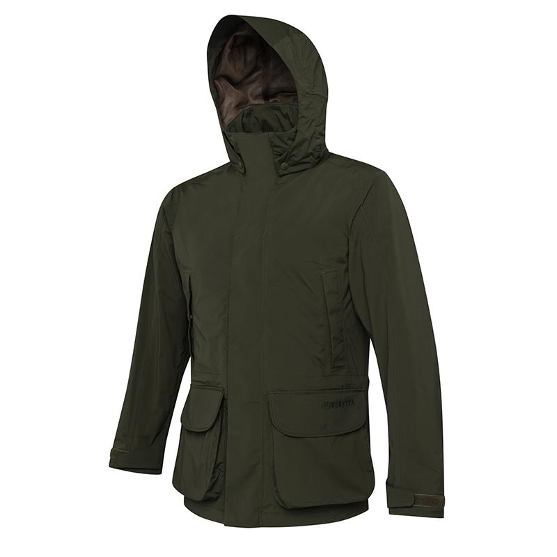 Características: • Capuz de emergência ajustável • Fecho de correr SBS e botões de pressão sob aba • Bolso Napoleão com fecho de correr SBS • Bolsos laterais com extraforte para bloquear a aba do bolso • Cordão de aperto na cintura • Punho ajustável por Velcro • Bolso interno com fecho de correr SBS • Cordão de aperto na parte inferior • Logótipo Beretta bordado na aba do bolso esquerdo • Corte: direito