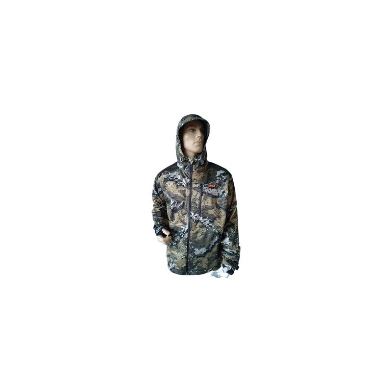 - Matériau principal : Tissu polyester, silencieux et technique en Camo Veil, traitement déperlant et anti-taches DWR. - Capuche attenante réglable : avec cordon de serrage et visière - Coupe longue dans le dos pour une bonne protection - Respirabilité et imperméabilité : membrane Storm Protect@ avec coutures étanchées. 2 aérations zippées sous les bras - Poches : 2 poches latérales, 1 poitrine, 1 intérieure et 1 poche carnier - Poignets Velcro avec manchons d’étanchéité (trou de pouce) - Zips : Nouveau zips YKK Waterproof (la référence mondiale pour les zips). - Marquage : Broderie MARKHOR sur le devant gauche au niveau de la poitrine Et logo Markhor sur le haut du bras droit. - Tailles : S à 3XL / - Poids : 0.610 kg en taille L