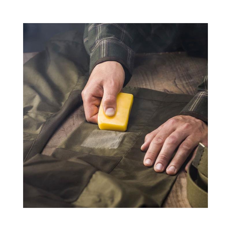 Ao cuidar da sua roupa, poderás usá-la por muitos anos. Encera a tua roupa TC depois da lavagem, torna-a mais resistente à água e prolonga a sua vida útil. Usar apenas no material TC de Pinewood. Aquece com o ferro ou secador de cabelo após o tratamento. A cera é ecológica, feita de cera de abelha natural e parafina.