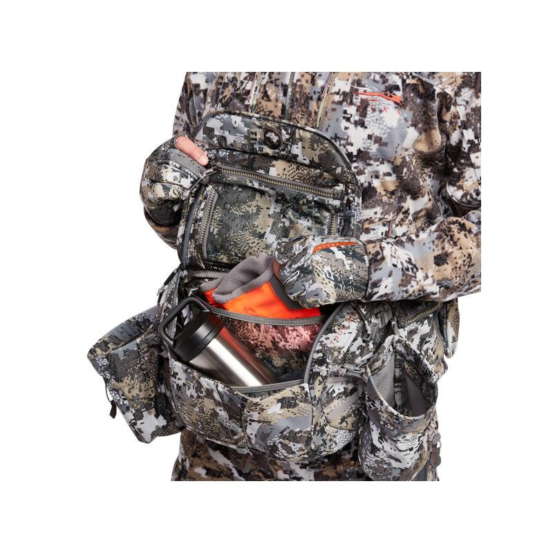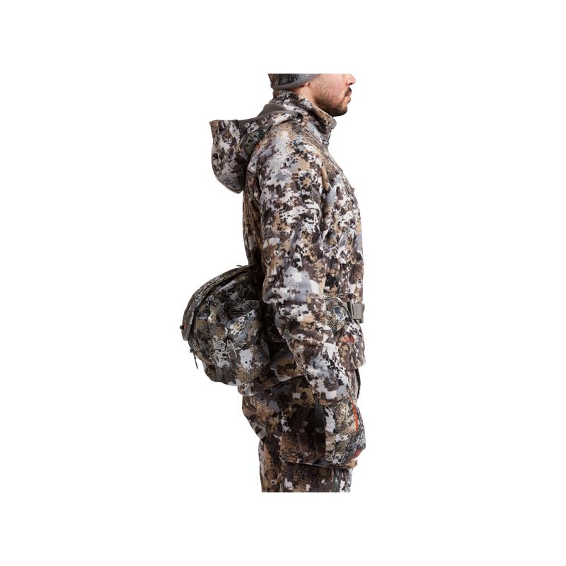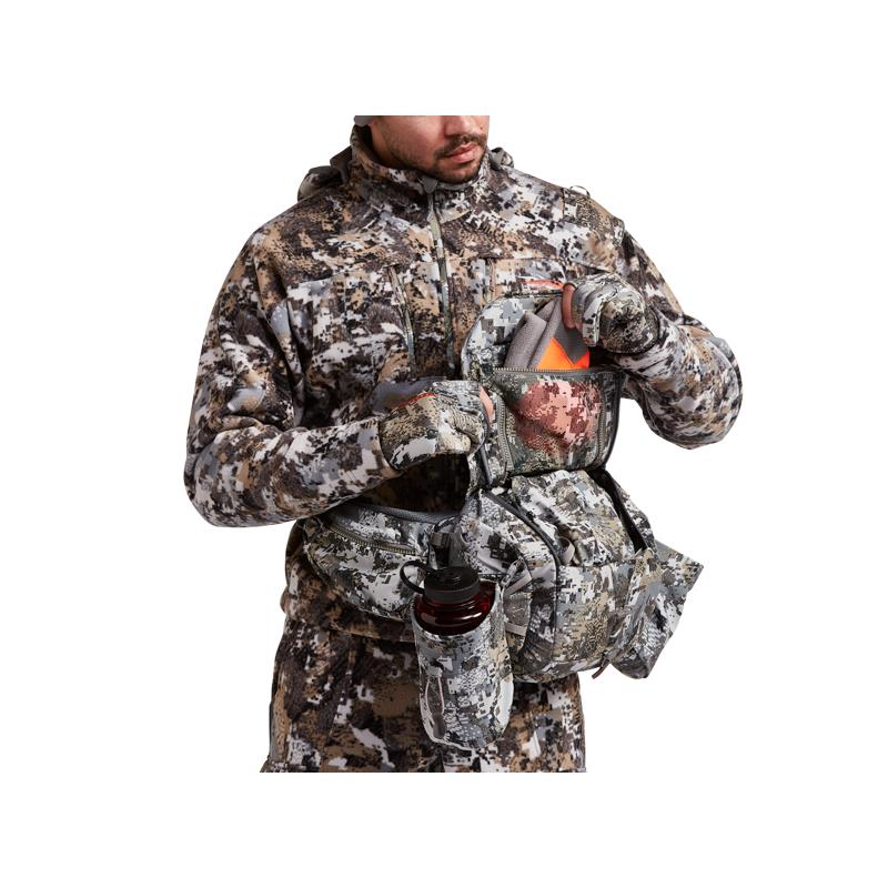 Eficiência discreta para o caçador minimalista numa bolsa de cintura com um casaco removível Sitka Gear e um sistema de arnês de ombro com babete