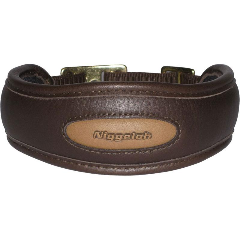 Colar em couro PREMIUM, material de neoprene e couro castanho, argola em latão.