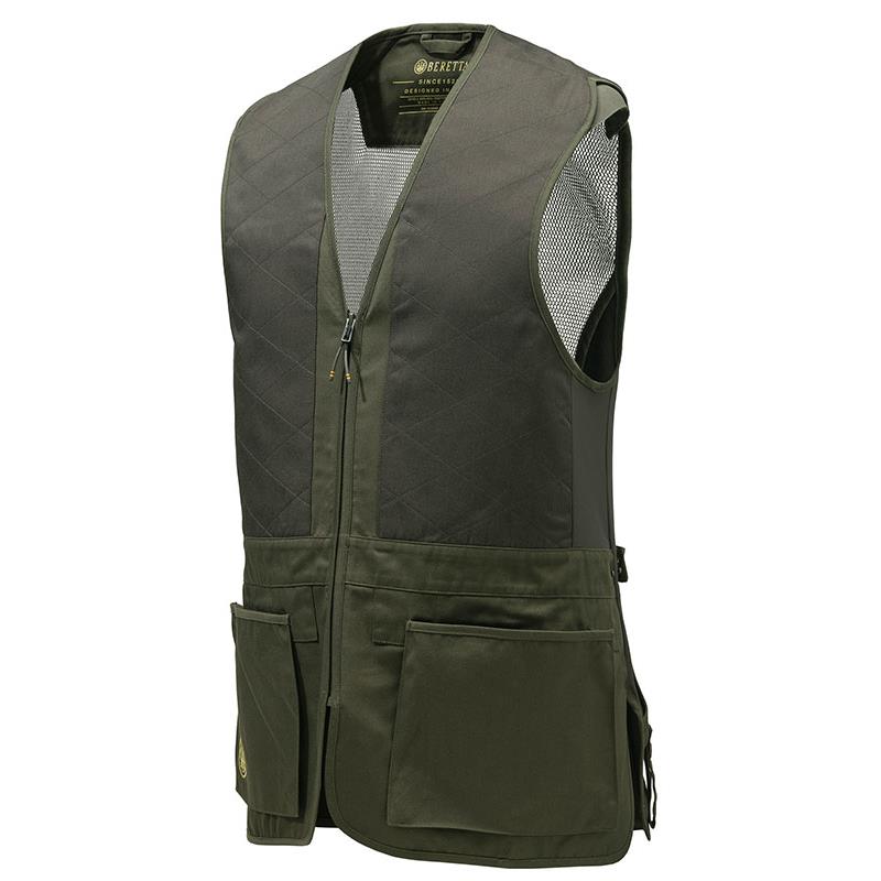 Colete de tiro para Tredi confeccionado em algodão com costas em malha 3D e inserções elásticas ao nível das ancas. Confeccionado em algodão pesado de 227 g com inserções elásticas nas ancas para garantir conforto e ajuste. A malha 3D nas costas aumenta a respirabilidade para maior conforto no verão. A cintura ajustável permite adaptar facilmente o caimento do colete.