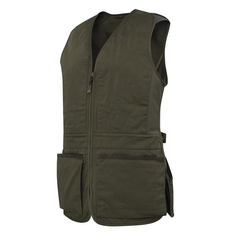 Características: • Ombreiras em algodão, acolchoadas • Zíper central YKK. • Bolso compatível com o "Beretta Recoil Reducer EVO" (não incluído) • Bolsos frontais espaçosos com fole e reforço em microfibra • Painéis elásticos nos quadris • Ajuste da cintura com botões de pressão • Sistema para pendurar fones de ouvido ou uma toalha na lateral • Bolso traseiro de dupla entrada com reforços em microfibra • Logo Beretta bordado • Corte: diretamente