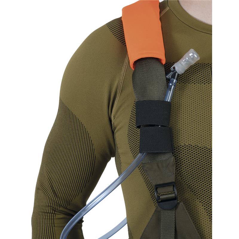 • Grande bolsa traseira. • Bolsa interna traseira com fecho de correr e guia de tubo para saco de hidratação de até cerca de 3 L (opcional). • 2 bolsas internas com fecho de correr.