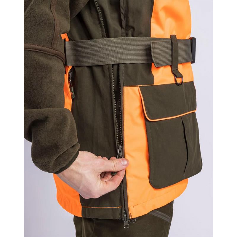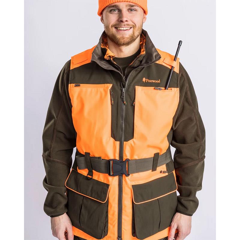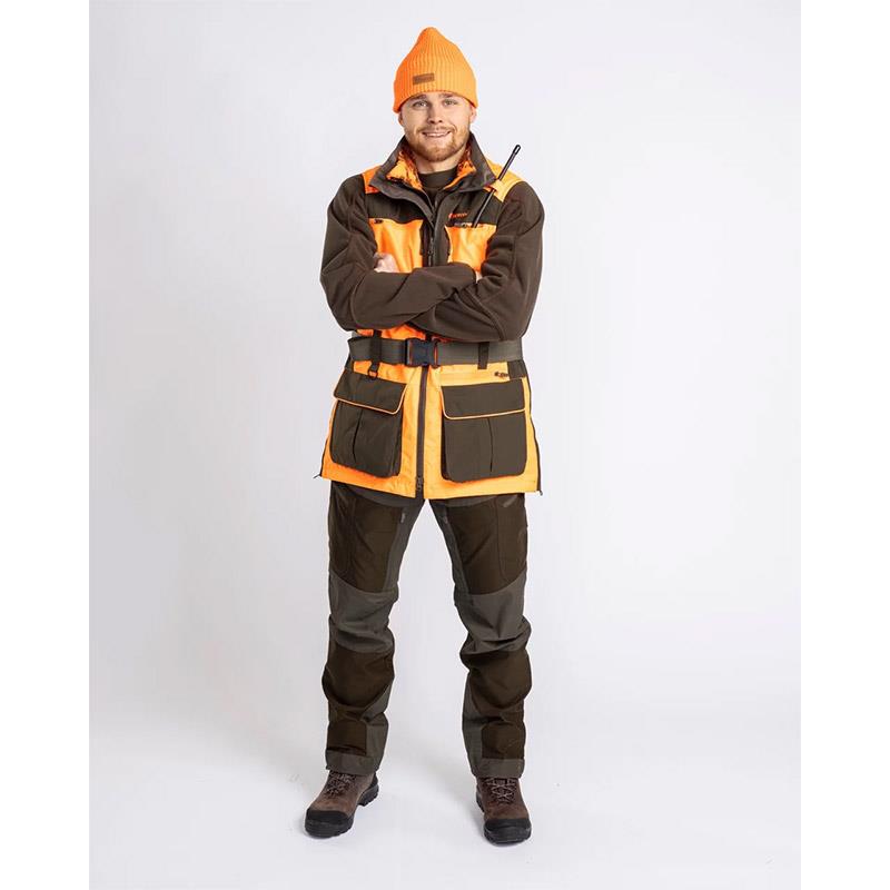 O colete está equipado com anéis D onde podes prender uma faca ou uma trela para cães. Possui muitos bolsos práticos; bolso para a caça, bolsos interiores com fecho, bolso GPS com fecho, bolsos duplos para rádio com fecho e bardanas na parte externa do colete para manter a antena no lugar, e dois grandes bolsos para as mãos com botões de pressão. A parte inferior do colete pode ser apertada com um cordão, na parte de trás existe um refletor integrado que proporciona visibilidade na escuridão, o que é perfeito quando caminhas ao longo da estrada escura em direção ao carro. A gola é ligeiramente acolchoada para proporcionar conforto extra ao redor do pescoço e do queixo. Na cintura, existe um cinto com uma fivela de plástico robusta que pode ser apertada. O cabide ao nível do pescoço é reforçado para que não se quebre quando prenderes um colete cheio de equipamento num gancho.